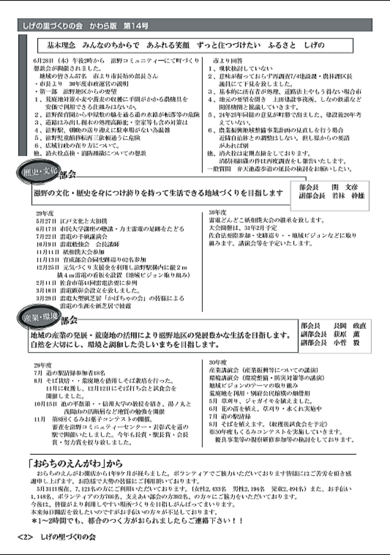 し げ の 里 づ く り の 会
