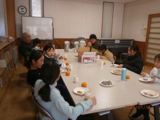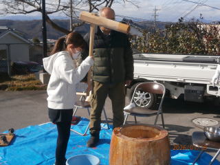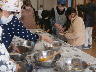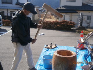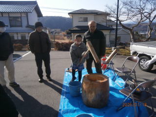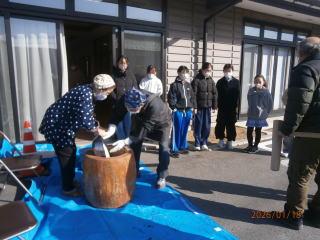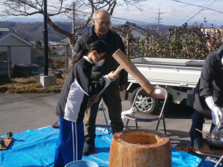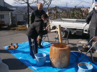 ♢♢♢ 令和7年1月19日(日) 滋野コミニティーセンター 午前10時から 午後2時まで 参加者児童3年生~6年生迄 18名 お手伝いの女性 7名 男性 7名 合計32名にて開催を致しました。 もち米が準備出来るまで、 地域の方と 皆でゲーム をして まっていました 臼と杵で餅つき 出来た 餅ちを きな粉 とゴマ をまぶし 完成 皆で 試食 できたてのお餅は柔らくてとても美味しいと児童の皆さん満足